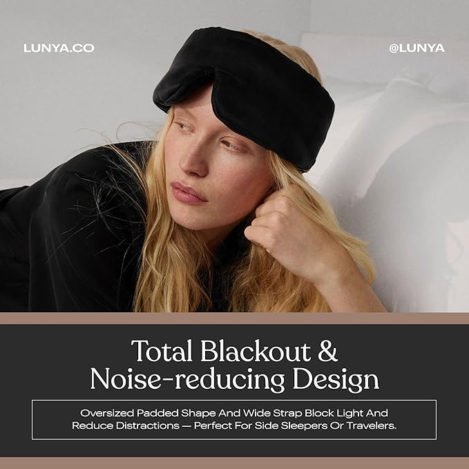 Lunya Weighted Silk Sleep Mask – Mulberry Silk Eye Cover with Cooling Glass Beads, Noise-Reducing Fit, Washable Fabric, and Travel Pouch – Sleeping Mask for Men and Women - Black – Large