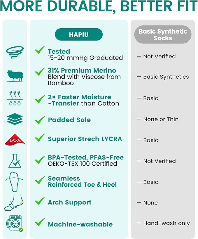 - KEEP YOUR FEET FRESH: A blend of Merino wool and rayon made from bamboo, our support socks are ultra-soft, itch-free, anti-odor, moisture-wicking, thermoregulating, and breathable, providing all-season comfort
