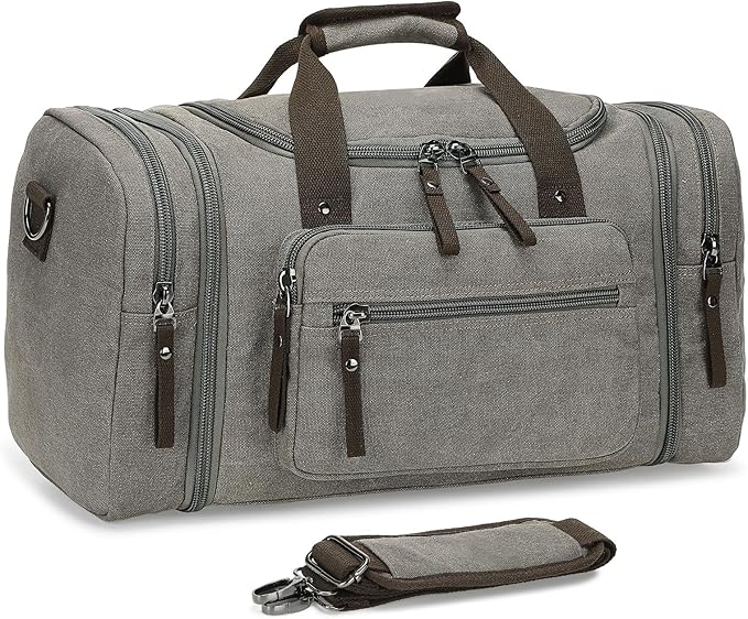 Expandable Canvas Duffel 50cm-58cm, Sturdy Zipper and Reinforced Handles, Lightweight Carry-On Weekender Bag for 3-5 Day Trips, Gray