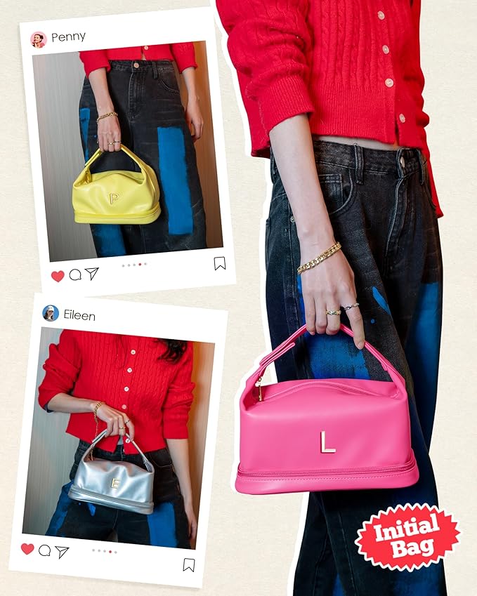 - 【Double-layer Design】The monogrammed makeup bags is double-layer with a unique design of upper and lower storage areas. The bottom compartment is great for storing cosmetics, eye shadows, makeup brushes, and other items. The top layer features a large opening for easy access, along with two small compartments for lipsticks and earrings.