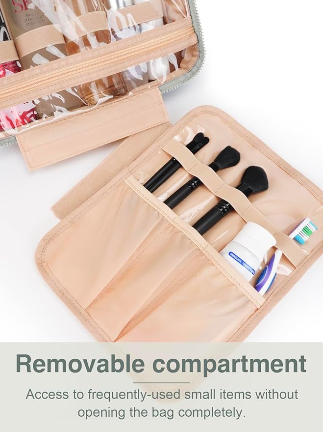 - Easy Access & Travel Friendly: Equipped with a 360° rotating metal hook, it offers multiple hanging options in any bathroom or closet. Transparent pockets provide a clear view of your items, no digging around. The detachable bottom pouch adds flexibility and can be used on its own. A trolley belt on the back makes hands free, no need to worry about traveling with smaller size suitcase.