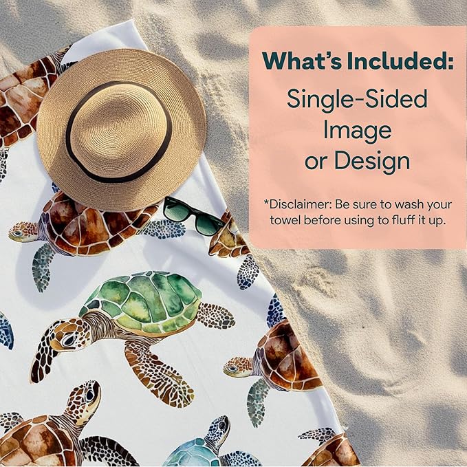 Ships Next Day - Personalized Beach Towel for Kids & Adults - Printed in USA - Custom Towels with Picture and Text - Quick Dry Pool Towels - Cotton/Poly Blend - 30" x 60" - Sea Turtles