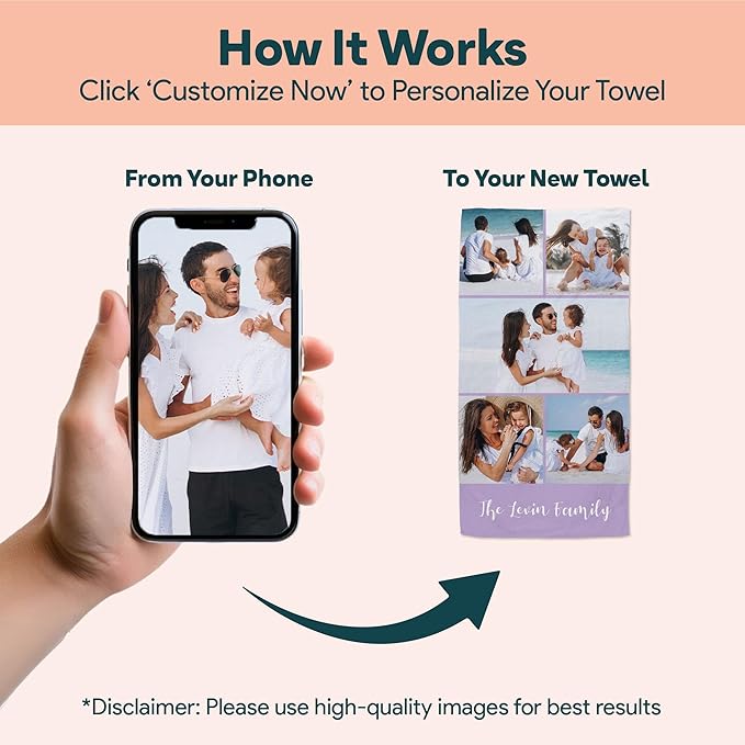 - Trendy Gift for Kids and Adults - Turn your favorite memories into a personalized beach towel! Click 'Customize Now' to start designing your new favorite custom beach towel.
