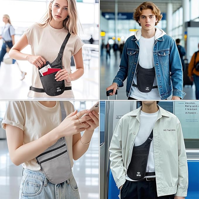 - 【Ultra-Slim, Invisible Comfort】Crafted to disappear under clothing, this lightweight Travel wallet features a soft, breathable back panel that feels gentle against your skin—ideal for hot summer travels or long flights. The 0.35-inch slim profile ensures no bulk, Ideal for all-day comfort, even on sensitive skin