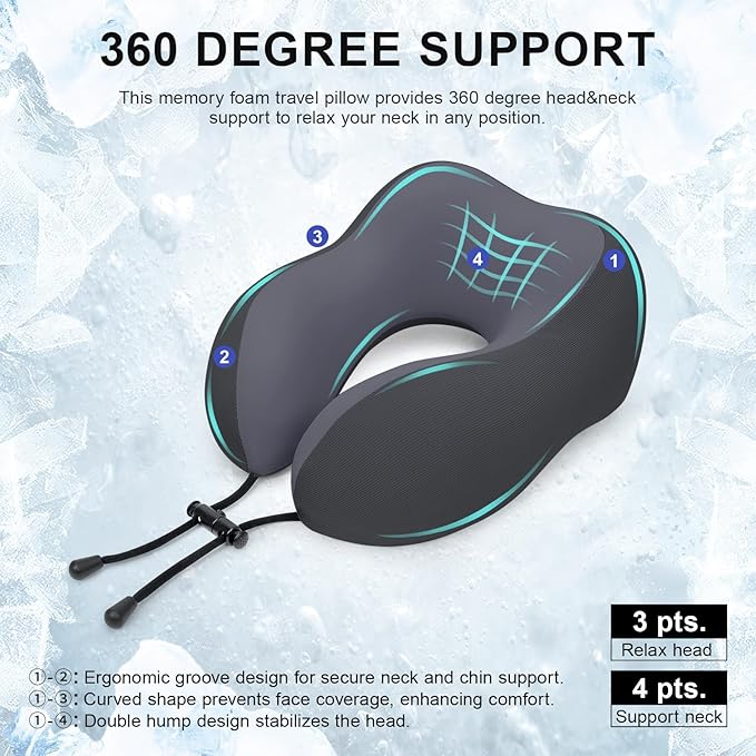 - Perfect Support with Ergonomic Design: Our travel neck pillow has unique curves and shape design that can naturally fit your neck and back; it offers 360°support helps you keep your neck and head upright to alleviate pressure and without getting any soreness during travel. The durable rope lock could be used to adjust the angle and the size of the pillow to meet different neck size requirements. It will be your best sleep partner for travel.