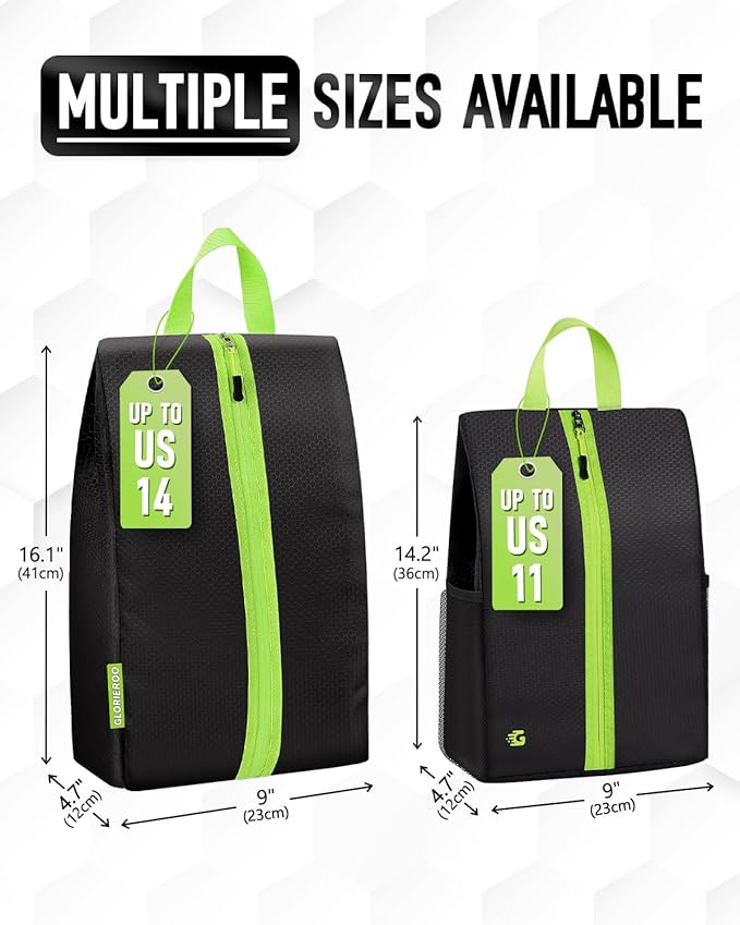 Smell Proof Shoe Bags for Travel-Soccer Cleat Bag Smell Proof with Active Carbon Fabric | Odor-Absorbing Water-Resistant Track Shoe bags for Sports (Black with Green, UP TO US11)