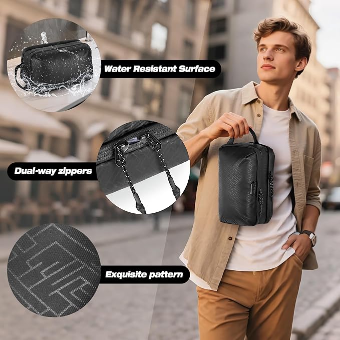 Yarwo Travel Toiletry Bag for Men, Hanging Dopp Kit Shaving Storage Case, Water-resistant Toiletry Organizer Hygiene Bag for Toiletries, Skincare, Razor, Makeup, Cosmetics, Shower Essentials
