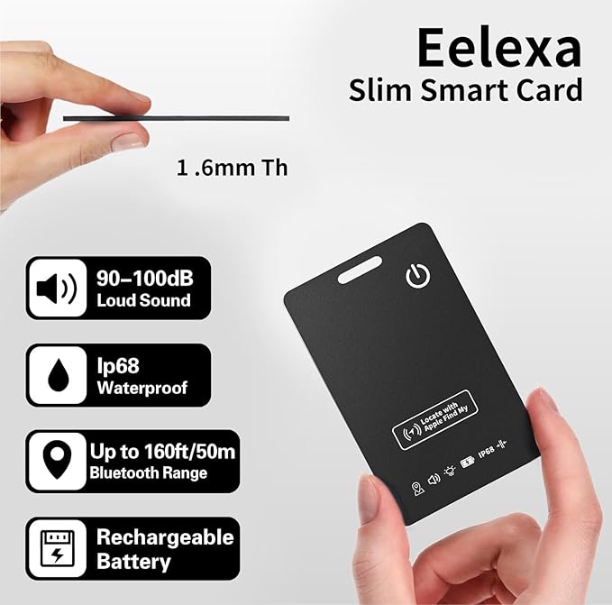 - 【100dB Loud Ring】Open the Find My APP on your iPhone, tap the Play Sound button, and the tracker card will beep as long as it is within Bluetooth range.Its beeps are up to 100db,which can be heard clearly even when held down by thick blankets.