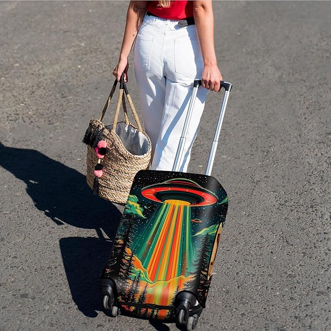 Suitcase Cover for Luggage 29-32 Inch, Waterproof Elastic Luggage Protector, Anti-Scratch Durable Zipper Baggage Cover with Handle Wrap, Travel Accessories for Luggage, Colorful alien UFO