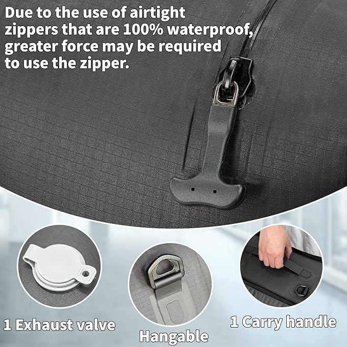 - 【Multi-scenario Applicability and Warm Tip】Because of its superb durability, abrasion resistance, waterproof and space-saving features, our space saver bags suitable for frequent business trips, traveling, camping, water activities, beaches, and many other scenarios. Because of the airtight zipper, zipper use may require greater force. If you have any questions, please do not hesitate to contact us
