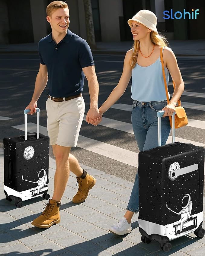 Slohif Luggage Cover for Suitcase Tsa Approved Protector - Luggage Sleeve Large Suit Case Cover Travel Stretch Baggage Case Protective Washable Fit 31-32 Inch Astronaut XL