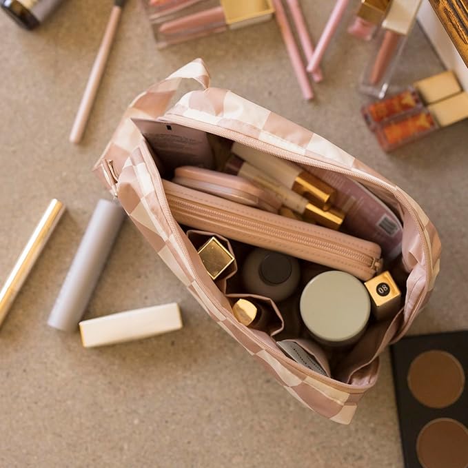 - Compact & Lightweight: Light in hand and thoughtfully sized at 8.5" × 6" × 4", this makeup bag offers ample space for skincare, cosmetics, and travel essentials. Its soft, structured shape holds form without bulk, while waterproof fabric keeps items dry and organized.