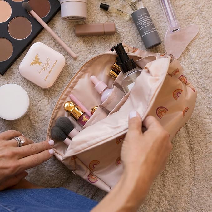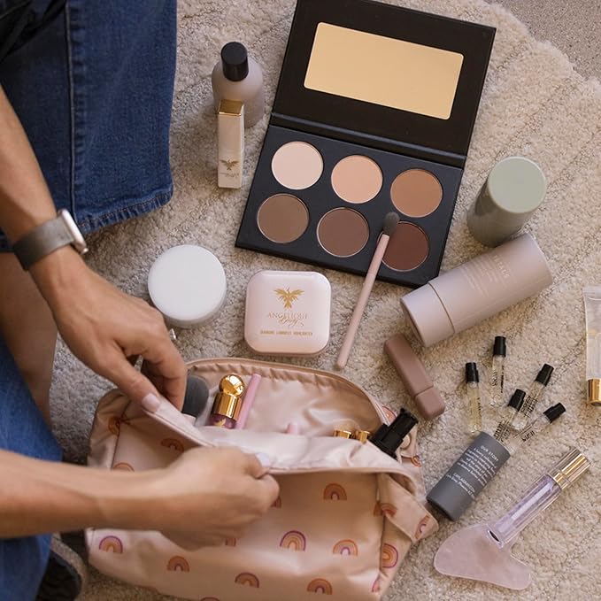 - Compact & Lightweight: Light in hand and thoughtfully sized at 8.5" × 6" × 4", this makeup bag offers ample space for skincare, cosmetics, and travel essentials. Its soft, structured shape holds form without bulk, while waterproof fabric keeps items dry and organized.