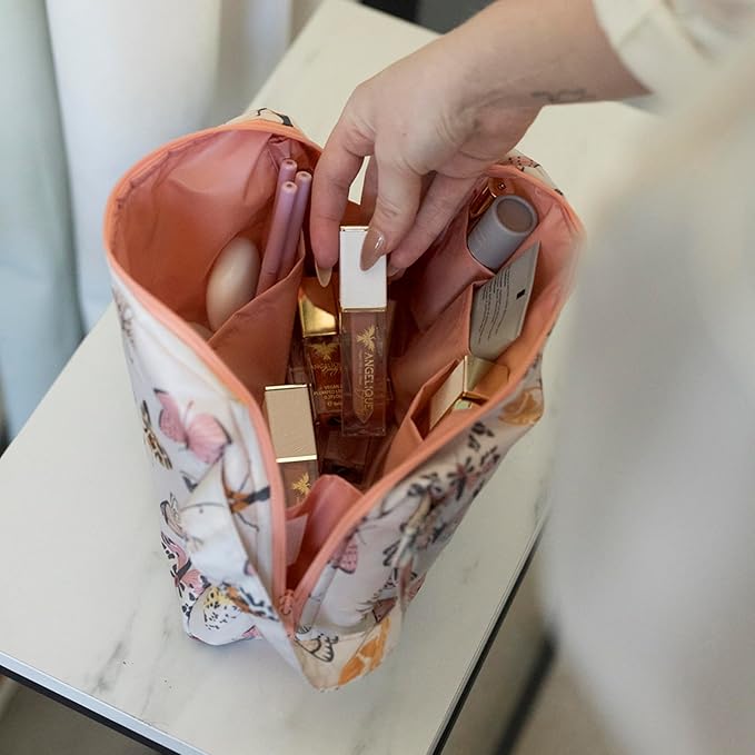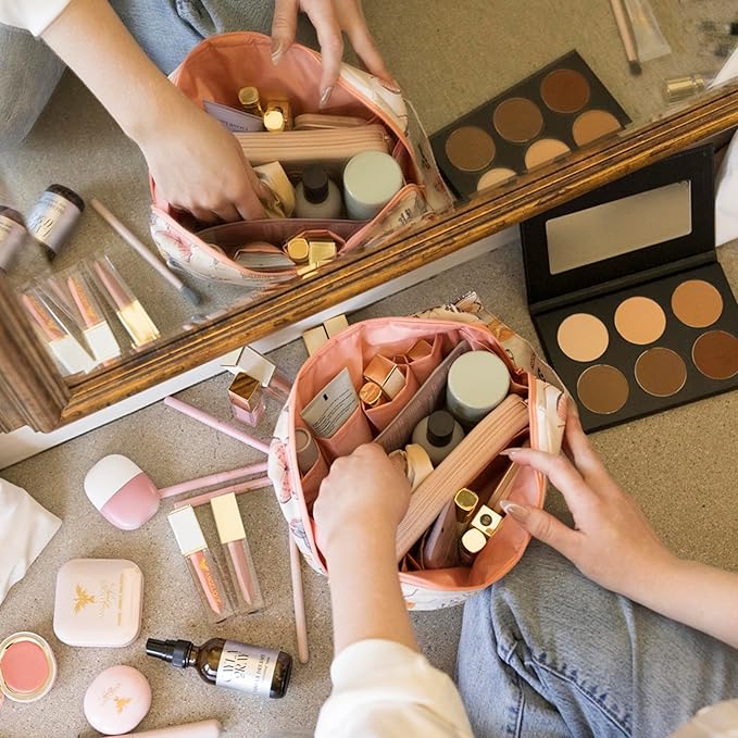 - Compact & Lightweight: Light in hand and thoughtfully sized at 8.5" × 6" × 4", this makeup bag offers ample space for skincare, cosmetics, and travel essentials. Its soft, structured shape holds form without bulk, while waterproof fabric keeps items dry and organized.