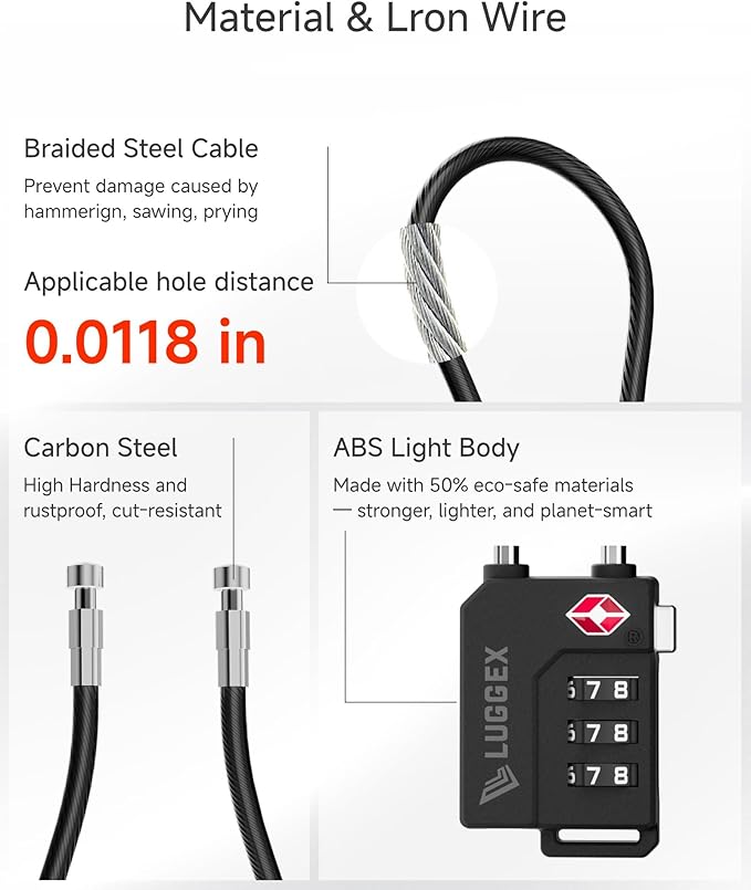- 【Choose Right, Warranty Bright】 We've got your back! LUGGEX's cable locks come with lifetime protection. Any issues? We'll make it right within 12 hours - no runaround, no hassle.