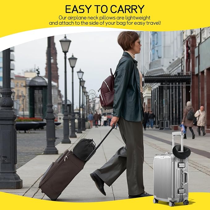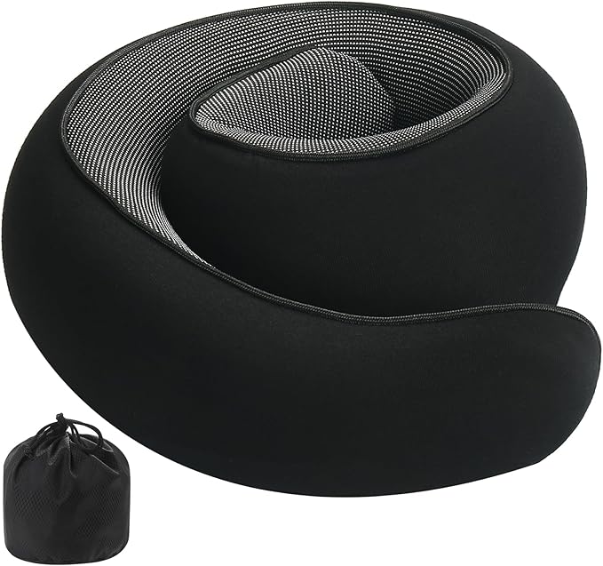 - Head Neck Support: This supportive neck pillow can help make the journey more comfortable by reducing stress on your neck and shoulders, and allowing you to sleep comfortably upright. Additionally, placing the memory foam travel pillow behind your back can provide lumbar support and help alleviate stress incurred on your back during extended periods of sitting.