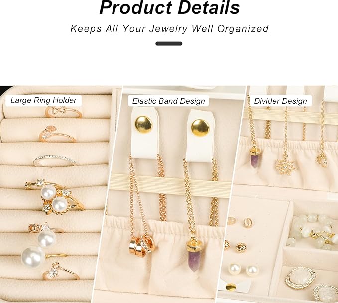 - Gift for Women—The small jewelry box comes with a beautiful gift card; no additional purchase is required. The travel jewelry box for women is the best gift for your girlfriend, wife, mother, daughter, or friend.