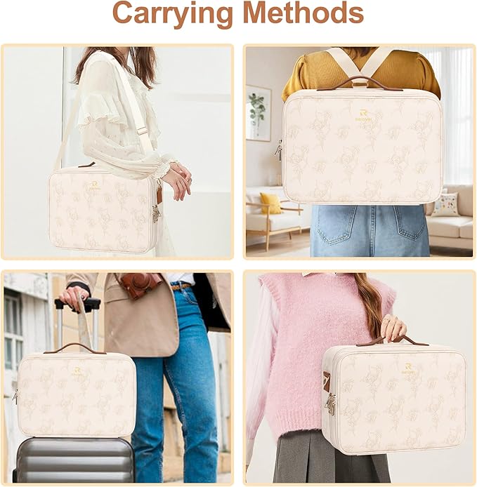 - Easy to Carry: This makeup case comes with an adjustable shoulder strap for use as a shoulder bag or crossbody bag or handheld. The luggage strap can be securely fastened to your suitcase, freeing your hands. It is the perfect companion for daily makeup and traveling.