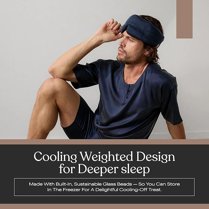- COOLING WEIGHTED DESIGN FOR DEEPER SLEEP - This silk weighted eye mask is filled with recycled glass beads that add gentle pressure to calm your senses. Store it in the freezer for a cooling, depuffing boost before sleep.