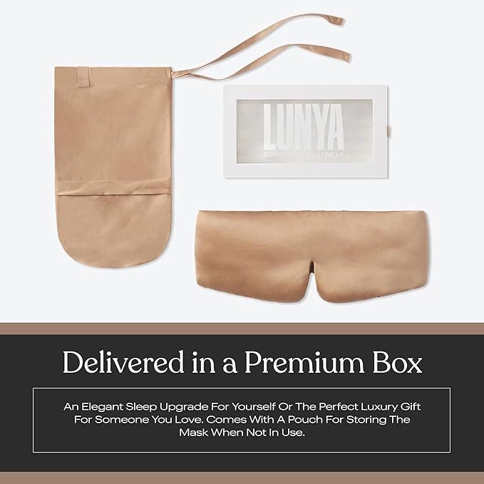Lunya Weighted Silk Sleep Mask – Mulberry Silk Eye Cover with Cooling Glass Beads, Noise-Reducing Fit, Washable Fabric, and Travel Pouch – Sleeping Mask for Men and Women - Hushed Tan - Small