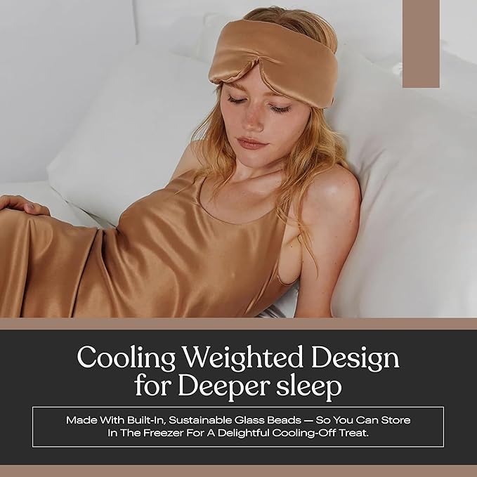 - COOLING WEIGHTED DESIGN FOR DEEPER SLEEP - This silk weighted eye mask is filled with recycled glass beads that add gentle pressure to calm your senses. Store it in the freezer for a cooling, depuffing boost before sleep.