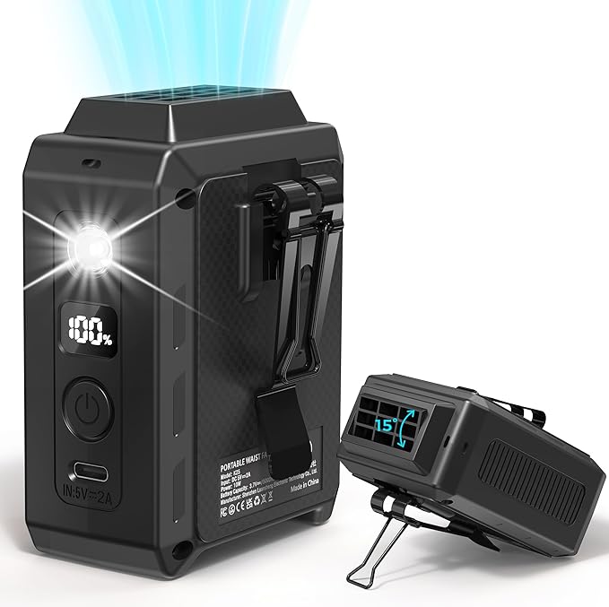 - 【Compact & Lightweight】Weighing only 0.44lbs, this fan is lighter than most waist fans on the market. Easy to carry or clip onto your belt or bag, it’s a perfect companion for running, camping, cycling, jobsite work, hiking, fishing, and more