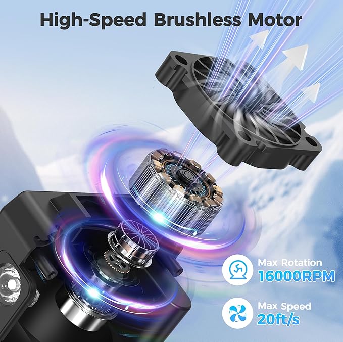 - 【5 Powerful Speeds】Equipped with a high-speed turbine motor, COMLIFE waist fan offers 5 adjustable speeds with a maximum rotation speed of 16000 RPM and wind speed up to 20 ft/s. Whether you're working on a hot jobsite or cycling under the sun, it delivers instant cooling relief