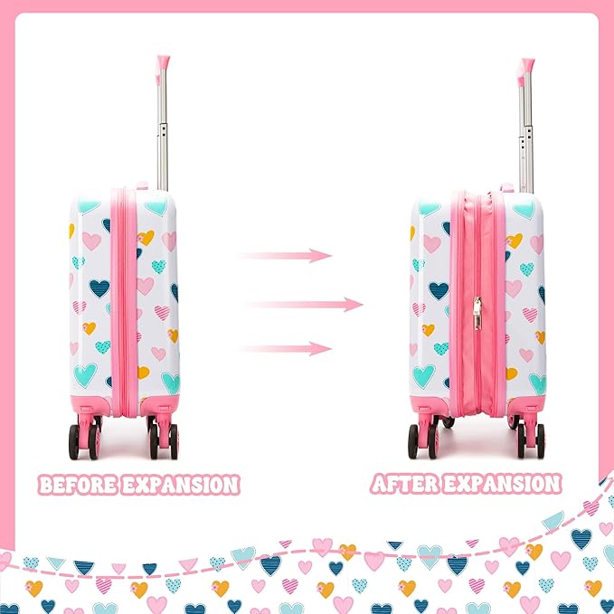 Kid's Luggage Set 3 Piece Suitcase Set 16" Hardside Luggage with Spinner Wheels Girls Carry on Toddler Travel Rolling Suitcase with Duffle Bag Neck Pillow Airline Approved