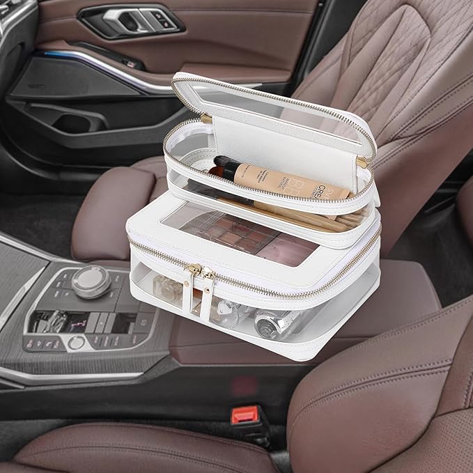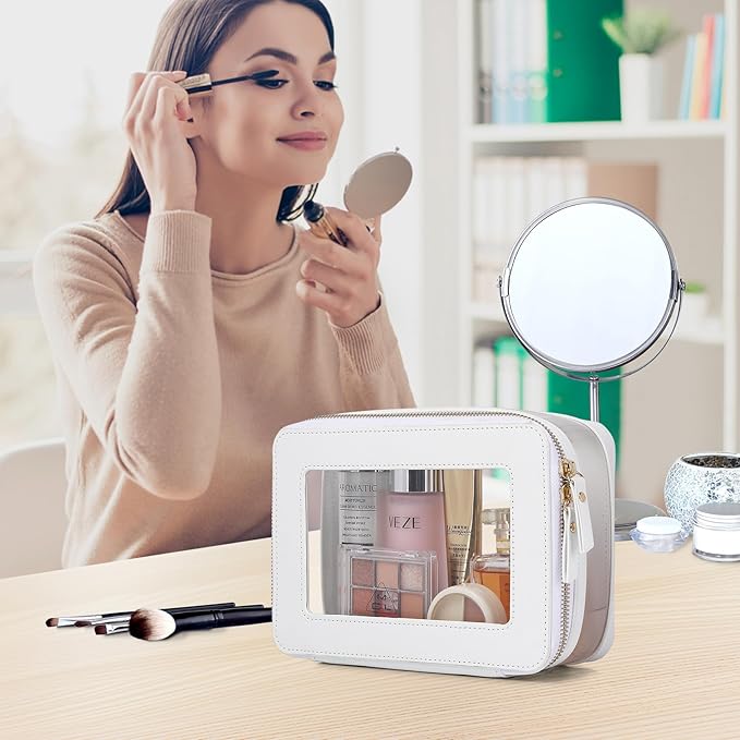 Pinkmik Clear Makeup Bag with Brush Case Travel Toiletry Bag Waterproof Cosmetic Organizer Car Essentials for Women (White, M+SLIM-1)
