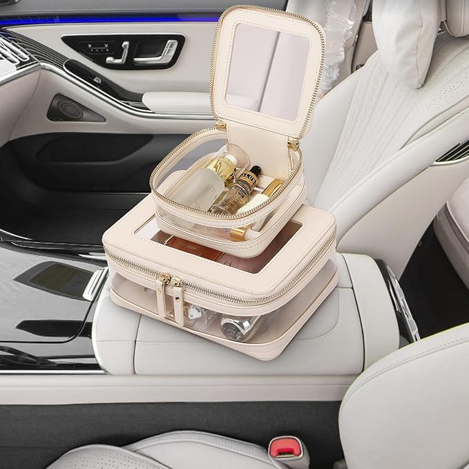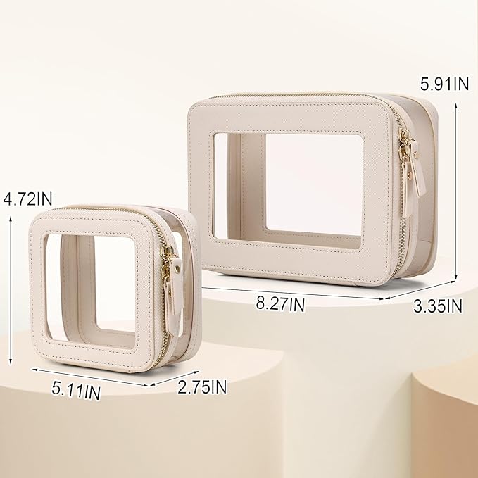 Pinkmik Clear Makeup Bag with Zipper Waterproof Travel Makeup Set for Cosmetics and Toiletries Women's Purse Organizer and Car Essentials (Beige, M+MINI-1)