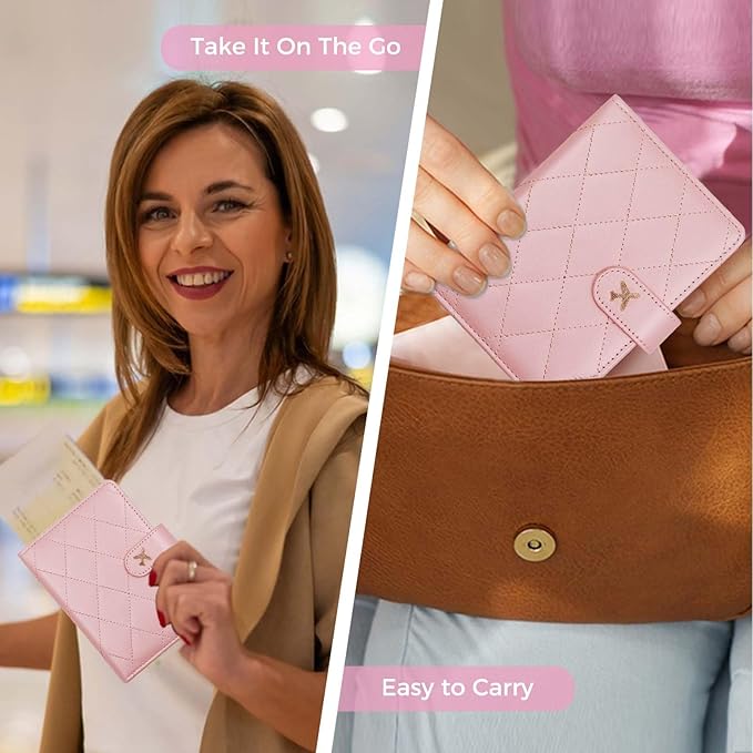 Melsbrinna Rfid Passport Holder for Travel women/Men, Cute Passport Wallet Rfid Blocking Card Slots, Rfid Passport Cover/CaseTravel Wallet, Passport Book Holder (1, LG PINK)