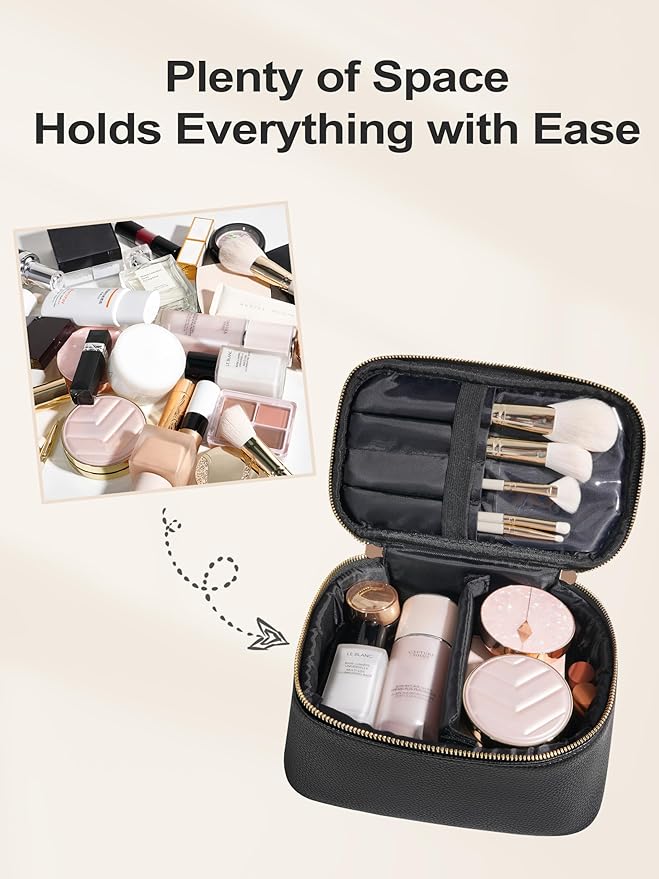 - 💕DURABLE MATERIAL: The cosmetic vanity bag for women is made of luxury PU leather fabric, waterproof and easy to clean inside and out, never worry about spills or leaks.(Cosmetic Accessories Not included).