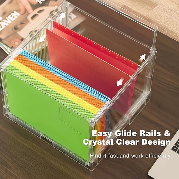 - BUILT-IN LABEL FRAME FOR ORGANIZATION:This easy-slide hanging file box features a dedicated label frame for clear folder categorization, maintaining a neat and efficient filing system for documents, bills, and important records