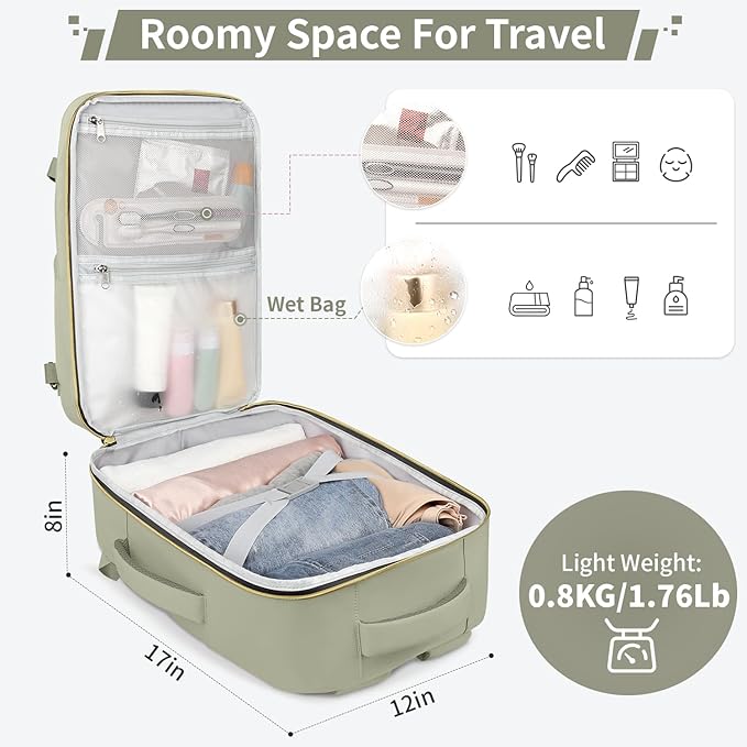 - Flight Approved Carry on Backpack: The TSA backpack for travel measures 17*12*8 inches and weighs 0.8 kg(1.76 lbs). This travel backpack for women men traveling features a 180 degree zipper closure to help you pass through security check quickly, compliant with airline carry-on requirements. Can be a personal item travel bag fits overhead bin or under the seat and save on paying any extra baggage fees