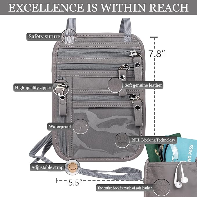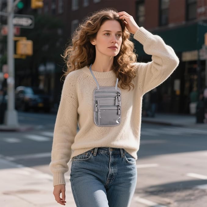 Neck Wallet - Rfid Wallet Women - passport holder for travel - Travel Wallet Passport Holder For Travel Women - 10.3x6.8inch (Light Gray)