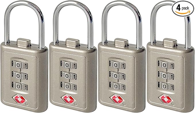 Combination Lock TSA Approved Lock 3 Digit Code Padlock Luggage Lock for Bags, Luggage, Backpacks, Toolboxes, Suitcases, Storage Cabinets (4 Pack)