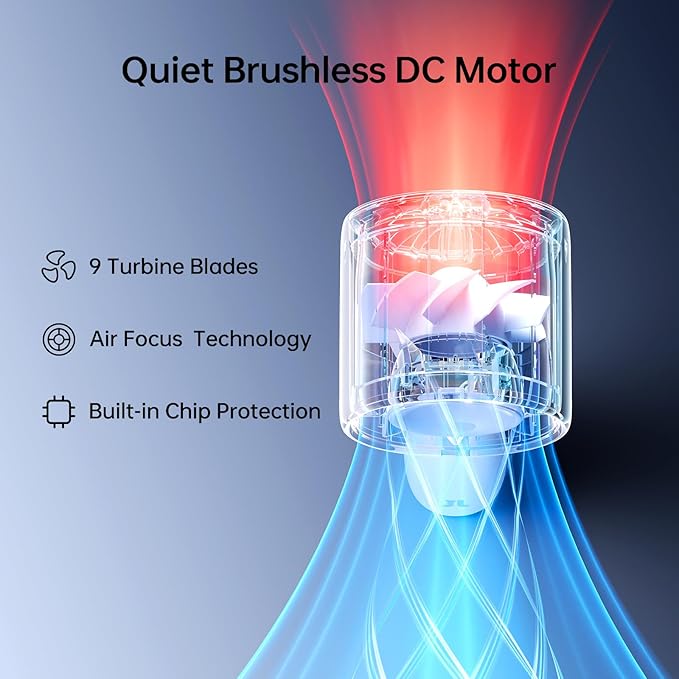 - Ultra-Quiet&9-Blade Design:With 9 ultra-quiet blades, this mini fan operates at a low noise level of 56-76 dB, ensuring a peaceful cooling experience.And the aerodynamic blades deliver strong, stable airflow for optimal comfort