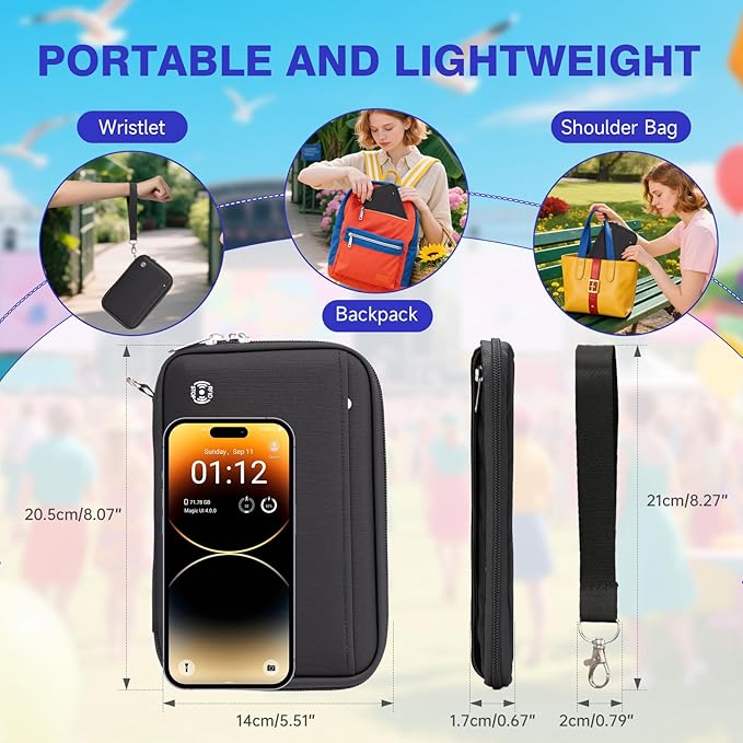 - Versatile Travel Essentials Organizer: More than a travel passport wallet, use it as a lightweight travel wallet for business trips, a fashionable accessory at festivals, or a family travel document holder for extended vacations. The removable wristlet adapts to any journey - from international to domestic travel.