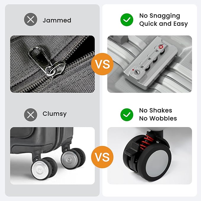 - SECURITY AND EFFORTLESS MOBILITY: VentureVault TSA approved carry on luggage features the TSA dual-lock system to keep your belongings safe on trips; 360° dual spinner wheels for silent and smooth rolling.