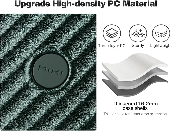 - 【German Covestro PC Material】Mixi suitcase is made of three-layer Covestro PC material, offering exceptional scratch resistance and impact resilience. This lightweight and durable material withstands heavy loads and has better resilience, ensuring that your items are protected during the journey