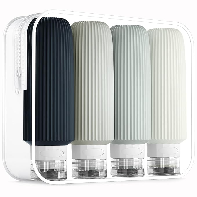 - Oversize 6oz travel bottle: Featuring a PVC toiletry bag, these travel-sized silicone bottles are perfect for storing and dispensing your favorite shampoos, lotions, and other liquids. Designed for convenience and durability, this travel set is a must-have for all your adventures.