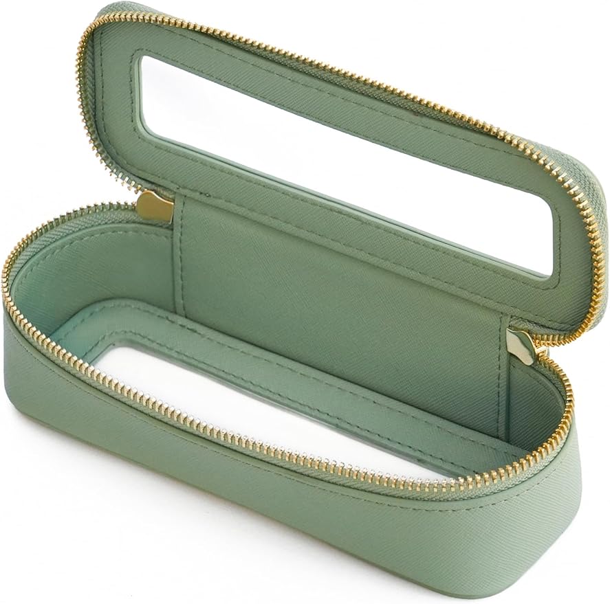- [Slim Brush Makeup Bag] - This slim makeup bag is 7.5'' x 2.5'' x 2.1'' (19.1cm x 6.4cm x 5.3cm), ideal for storing makeup brushes and daily mini essentials like lip balms, hair ties, jewelry, Air Pods, charging cords, and medications. Slip it into your purse, backpack, everyday tote, or travel bag for convenient access to your essentials.