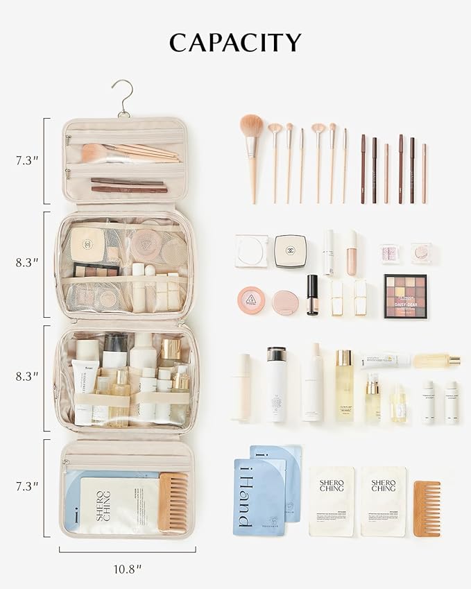- Spacious Yet Travel-Friendly – Measures 11 × 3.7 × 7.8 inches when folded. Features four large compartments with reinforced seams, offering ample storage without bulk. Easily fits your toiletries, cosmetics, and essentials in a compact, space-saving design.