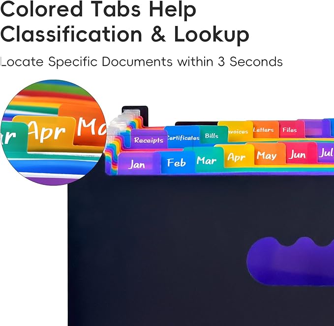 - 【Smart "collapsible + file storage + colored labels" Space Management】 Color-coded tabs with transparent label slots enable 3-second file location, Supports January-December bill marking for effortless annual financial management, Folds down to just 2 inches thick, saving 85% storage space when not in use.