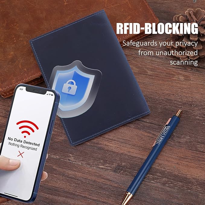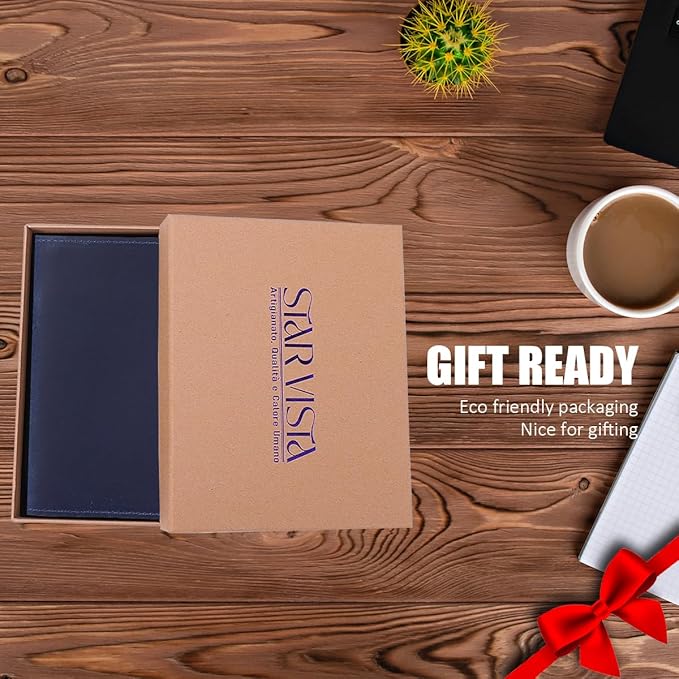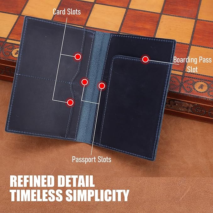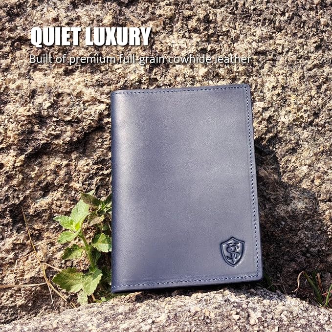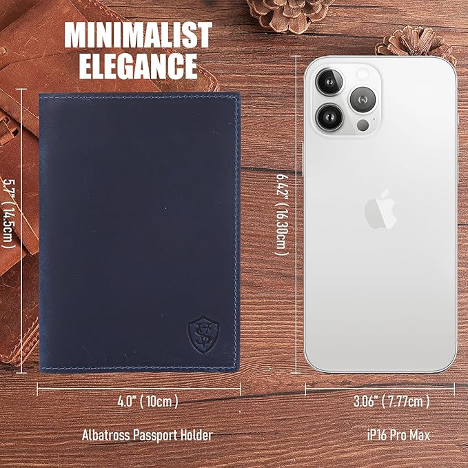 STAR VISTA Albatross Leather Travel Passport Holder, Minimalist Design, Full Grain Leather Case for Women and Men - Slim Passport Wallet, Bifold, RFID Blocking, Navy Blue
