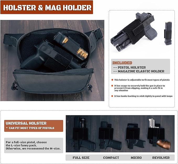 SHANGRI-LA Tactical Concealed Carry Fanny Pack for Men and Women, Low-Profile CCW Waist Bag, with Pistol Holster and Mag Holder, Multi-Use for Hiking, Travel, EDC