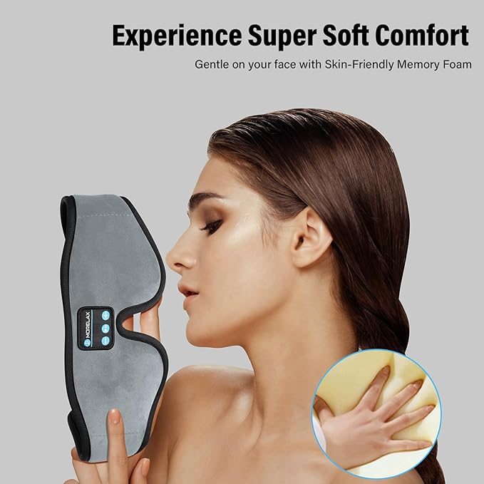 - 【3D Contoured Bluetooth Eye Mask】Based on ergonomics, the Morelax sleep headphones Bluetooth sleep mask is perfect for your face. The contours of the eye area are deeper, allowing your eyes to move freely. With zero pressure on the eyes, the 3D Bluetooth eye mask for sleeping perfectly solves the tightness issue of flat eye masks, bringing you a comfortable and long-lasting sleep. With an adjustable strap, the Bluetooth sleep mask fits all head sizes, is easy to adjust, and does not catch hair. It's the best sleep headphones for side sleepers.