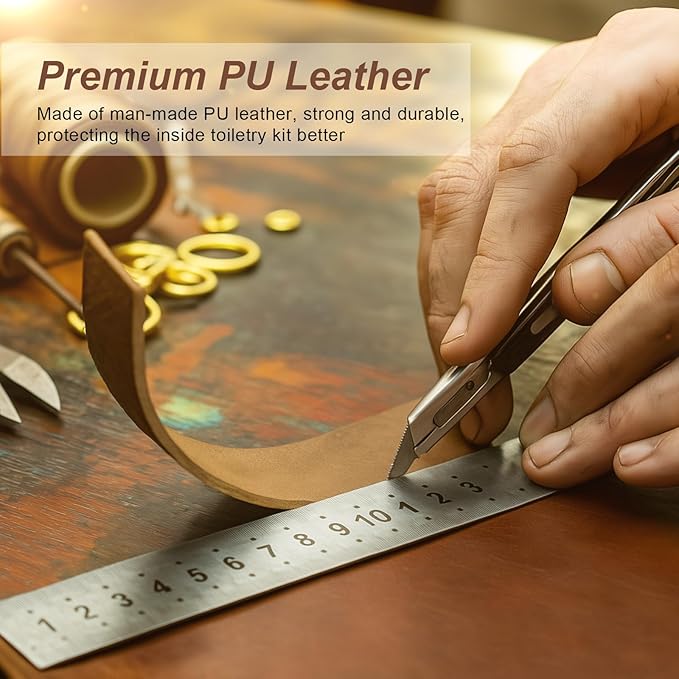 - Premium material: The travel toiletry bag is made of PU leather material & water-resistant polyester lining that exceptionally well-built. These make the bag itself very soft, smooth, and more easily stored, durable, easy to wipe clean, and protect your toiletries from splashed water