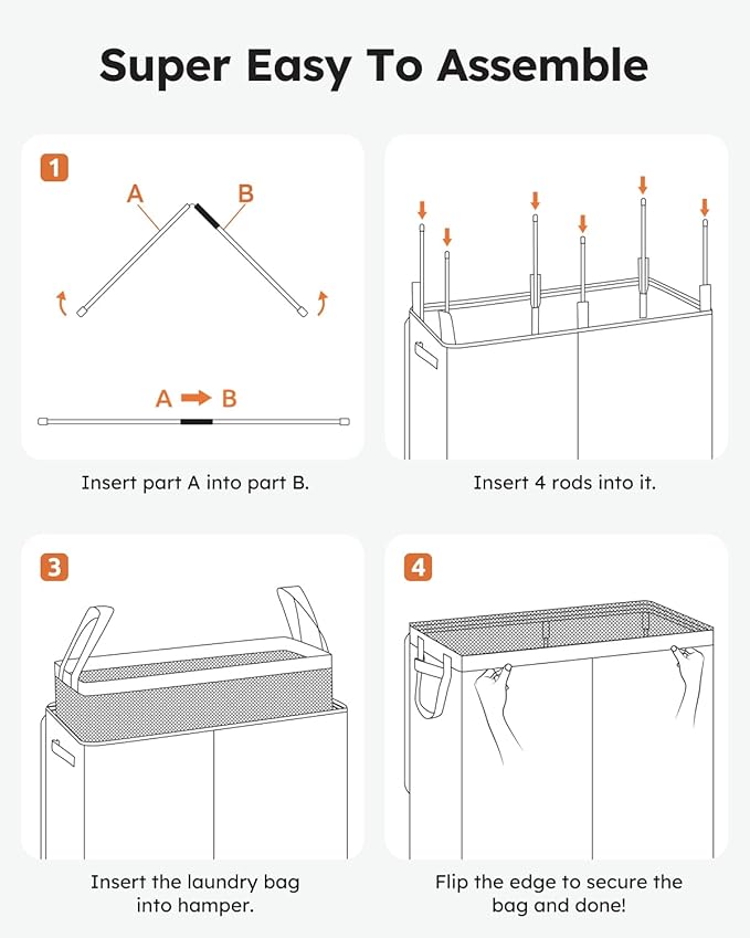 - 【Easy to Install and Foldable】This clothes basket with detailed installation instructions, just insert 4 support rods into the fixed tube, you can complete the collapsible laundry basket installation in 1 minute, which is simple and convenient. In addition, it can be folded up and stored in a cabinet when idle, reducing the space occupation.