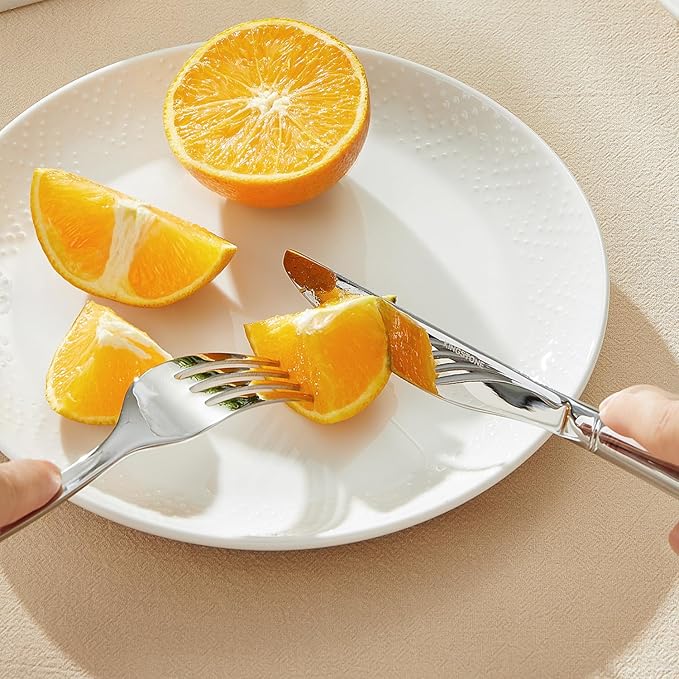 - 18/10 STAINLESS STEEL: The cutlery set is made of 18/10 food-grade stainless steel which is very durable and rust-proof. Meanwhile, the material is sturdy ensuring that silverware will not bend.